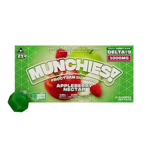 Experience pure bliss with every bite of Delta Munchies D9 Froot Jam Gummies – Appleberry Nectar. These full-spectrum Delta-9 THC gummies are infused with real fruit puree, offering a juicy and refreshing blend of crisp apples and sweet berries.